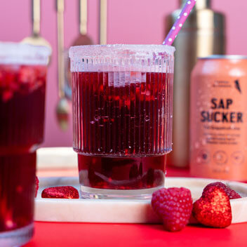 Sweet, bubbly and a little tart, this blushing mocktail is made for clinking glasses with people you love. Juicy cherry and pomegranate swirl with raspberry jam, finished with Sapsucker sparkling water—naturally sweetened with organic Canadian maple sap for gentle bubbles, light sweetness and refreshing hydration.